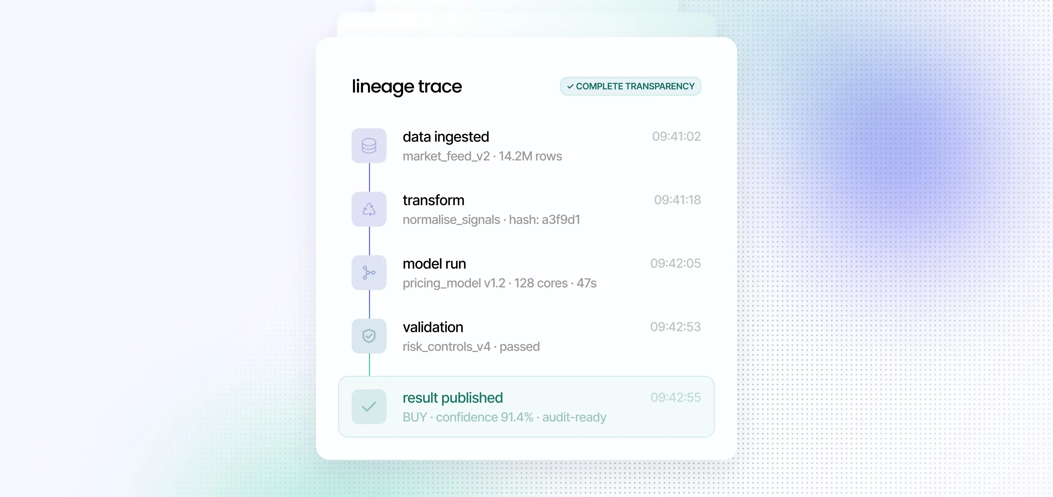 Ensure model reproducibility, data sovereignty, and regulatory compliance without slowing down the pace of innovation. Datatailr provides a regulatory-grade infrastructure that embeds transparency and auditability directly into the research-to-production lifecycle.